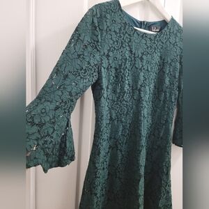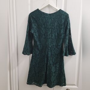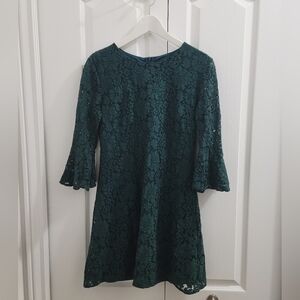 Lulu's Favorite Flair Forest Green Lace Flounce Sleeve Dress