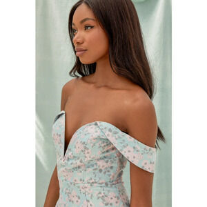 Lulus Favorite Song Dress Blue Floral Jacquard Off The Shoulder Mini NWT M