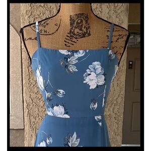 Lulus Feeling Elegant Slate Blue Floral Print Lace-Up Slit Maxi Dress Size S