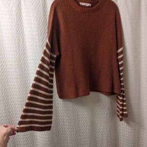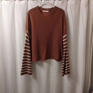 Lulu's Feeling Great Rust Brown Striped Bell Sleeve Sweater