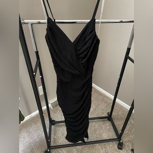 V-neck, asymmetrical seamed bodice, midi length, side slit, never been worn, brand new