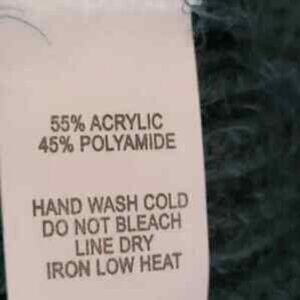 55% acrylic, 45% polyamide. Hand wash, line dry. Imported.