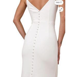 Today is the day! Let the Lulus Feeling of Forever White Sleeveless Mermaid Maxi Dress help you feel gorgeous on your big day! Medium-weight crepe knit shapes a flattering V-neckline and a princess-seamed bodice, all supported by slender adjustable spaghetti straps. A high, fitted waist continues into a figure-skimming mermaid silhouette that ends at a flaring maxi hem with a romantic train at the back. Put your gorgeous tresses in an updo to reveal a V-back above a faux button placket that accents along the back. Hidden back zipper/clasp.