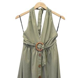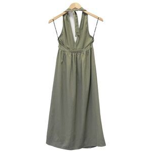 Lulus Feeling the Breeze Olive Green Buttoned Halter Backless Midi Dress Size XS