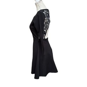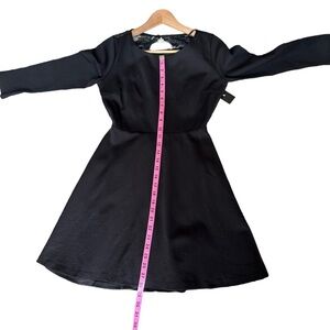 Felicity Black Backless Lace Skater Dress. This long sleeve fit and flare cocktails mini dress is great for any events.