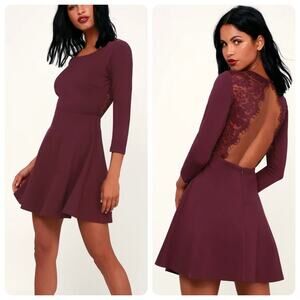 Felicity Plum Purple Backless Lace Skater Dress