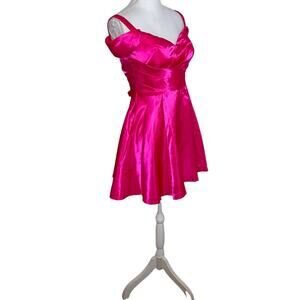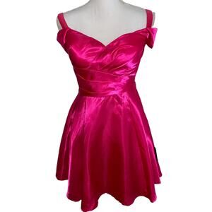 Lulus Fit & Flare Mini Dress Off Shoulder Sweetheart Satin Hot Pink NEW Womens S