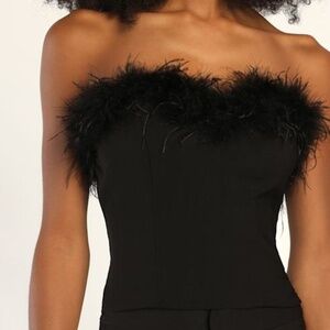 Lulus Flair For The Fabulous Black Feather Cropped Tube Top - Size S