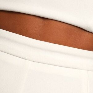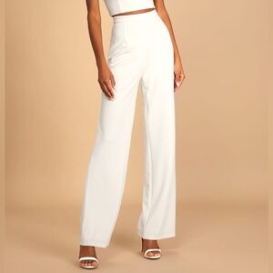 Lulus Flaunt It Like That Straight Leg High Waist Trouser Pant, Off White, L,NWT