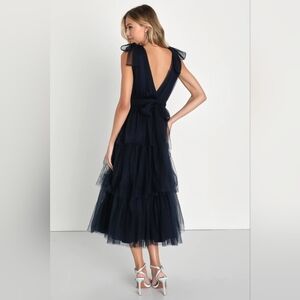 Lulus Flawless Arrival Navy Blue Tulle Tie-Strap Tiered Maxi Dress L Wedding. New without tags. See all pictures for details.