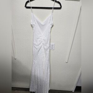 Lulu's Flawless Extravagance White Lace Trumpet Hem Maxi Dress Wedding Bride