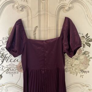 Lulus Flawless Forever Dress Women's L Dark Purple Midi Satin Pleated NWT
