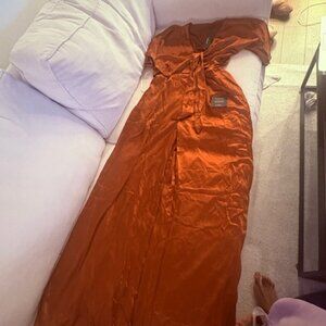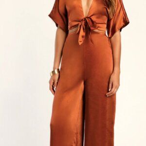 Lulus Flirt For Fun Rust Brown Tie-front Two-piece Wide-leg Jumpsuit - Size XL