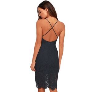 Lulus Flirting with Desire Bodycon Navy Blue Lace Fringe Dress NWT Size XL