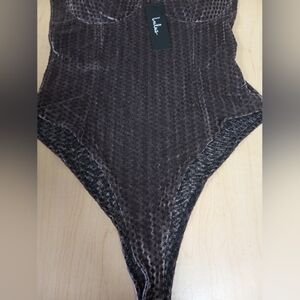 Lulus Flirty Feelings Velvet Mauve Purple Textured Bustier Bodysuit Size M