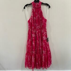 Lulu's Float to You Hot Pink Floral Print Halter-Neck Tiered Midi Dress