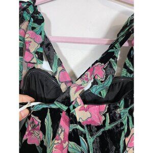 Lulus Floral Burnout Maxi Dress XS Black Babydoll Cottagecore Whimsigoth Fairy