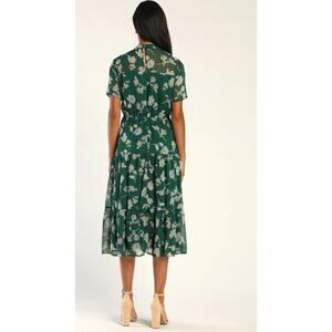 Lulu's Floral Dressed Up Dark Green Floral Print Midi Dress