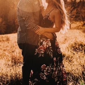 Like new, beautiful black wrap dress! This is a perfect winter, spring or summer wedding guest dress! Or formal prom dress. No flaws, just is one size to small for me. Beautiful slit.
