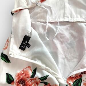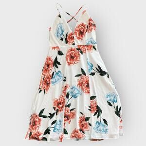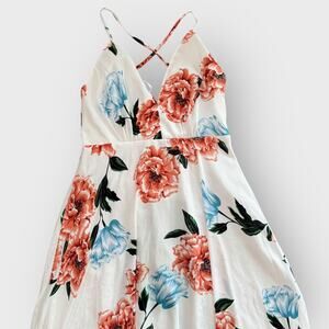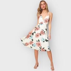 Lulus Floral Midi Dress Medium White Plunge Neck Crisscross Back Romantic Summer