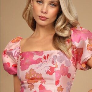 Lulus Floral Pink Puff Sleeve Dress Size small