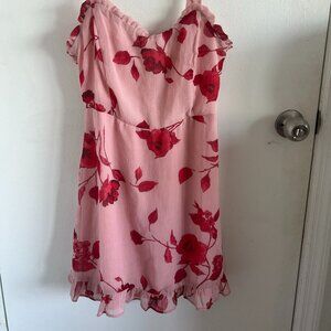 Lulus Floral Pink Ruffle Mini Dress Size: M