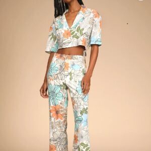 Lulus Floral Print Tie-Back Button-Up Crop Top Medium