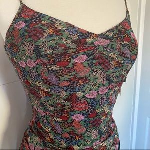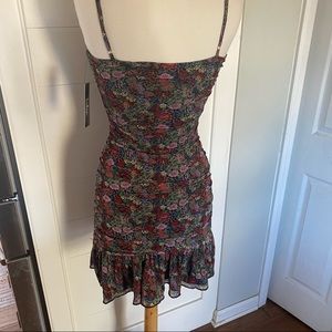 Lulu’s Floral Ruched Ruffle Spaghetti Strap Dress