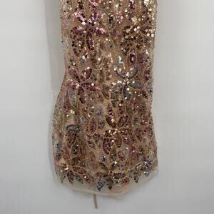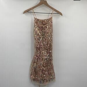 Lulus Floral Sequin Mini Dress Backless Lace Up Bodycon Rose Gold Womens Medium