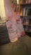 Elegant strapless dress with vibrant floral print. Features pink and green hues. Perfect for summer occasions.