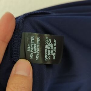 Description: High low hem, V-neckline, adjustable spaghetti straps, floral and polka dot print, fully lined, v neck, tie closure, lightweight chiffon fabric. 100% Polyester. Hand wash. Style# 66906.