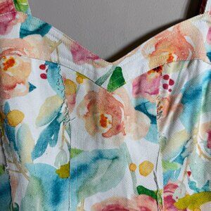 Brand new with tags super cute denim material floral dress. True to size and super cute! Brand new with tags!