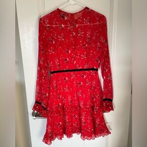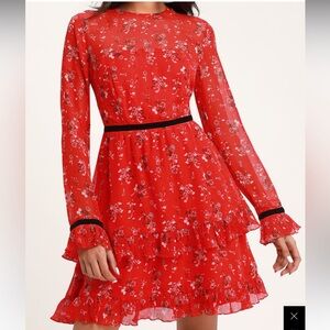Lulus Floral to See Red Floral Print Long Sleeve Mini Dress