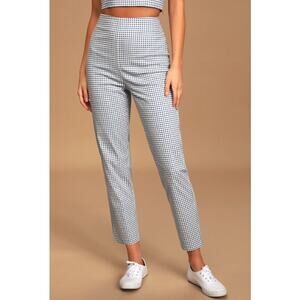 Lulus Follow The Sun Gingham Trouser Pants Check High Rise Plaid Blue White