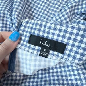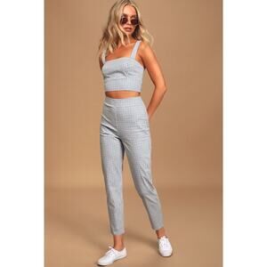 Lulus Follow The Sun Gingham Trouser Pants Check High Rise Cropped Blue White
