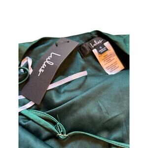 Brand new with tags, the Lulus Fondly Loved Dark Green Satin Wrap Maxi Dress has earned a special spot in our hearts forever and always! Crafted in sleek woven satin, this stunning gown features an overlapped wrap bodice with a deep V neckline and adjustable spaghetti straps that crisscross over a sultry open back. A wrap maxi skirt flows gracefully to a floor-grazing hem, securing at the waist with two long ties that can be styled in back for the perfect fit. Fully lined for comfort, this timeless silhouette is ideal for weddings, formals, or any special occasion. Details: Shell: 97% Polyester, 3% Spandex. Lining: 100% Polyester. Hand wash cold, line dry, iron low heat. Imported. Style 1617796. Colors and measurements may vary slightly due to differences in lighting, display settings, or AI-generated rendering.