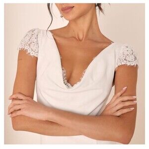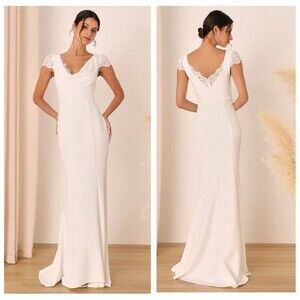 Lulus Forever Beloved White Lace Cap Sleeve Mermaid Maxi Dress Size 2X Bridal