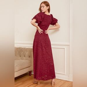Lulus Forever Loving You Wine Red Puff Sleeve Jacquard Maxi Dress