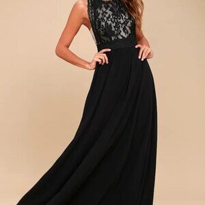Lulus Exclusive! It's official, the Forever and Always Black Lace Maxi Dress is our go-to stunner! Lovely floral lace with a nude lining shapes a rounded neckline and sleeveless bodice with plunging arm openings (with sheer, nude mesh). Banded, lace waist, and cascading Georgette maxi skirt. Hidden back zipper/clasp.