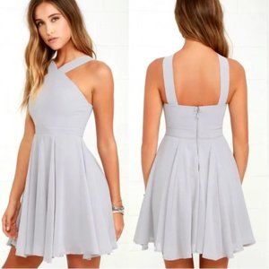 Lulus Forevermore Gray Sleeveless Halter Mini Skater Dress – XS