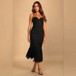 Lulu's Found Your Love Black Lace Sleeveless Trumpet Midi Dress L Wedding Party NWOT. See all pictures for details.