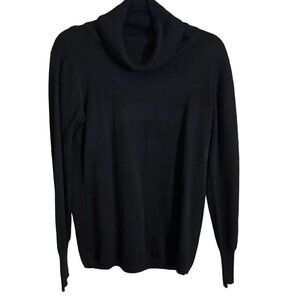 Casual black sweater with a stylish cowl neck design, perfect for everyday wear. Ribbed texture adds a touch of elegance. Super Soft Wool Blend, Closet Staple, Retail $68