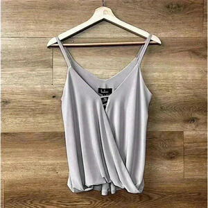 Beautiful minimalist gray purple cami. Spaghetti straps and open cut in front allow a sophisticated but relaxed style. A gentle v shape back allows this Cami to be worn dressed up or dressed down. Great for work to pair with a spirts jacket and then to wear out after work without a sports jacket.