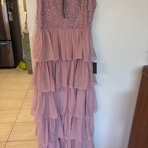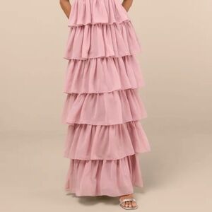 Lulus Galina Mauve Sequin Tiered Maxi Dress Pink - Size L