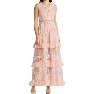 Lulus Garden Dreams Lace Tiered Maxi Dress, Size , Blush, EUC