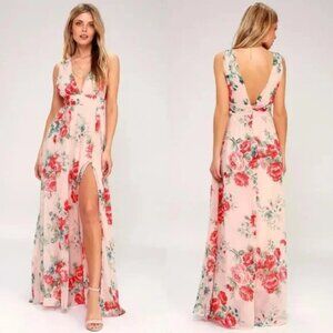 Lulu's Garden Meandering Blush Floral Print Maxi Dress Size S
