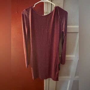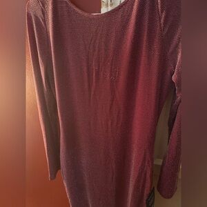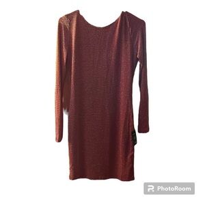 Lulus Gift of Love Red and Silver Backless Long Sleeve Bodycon Dress