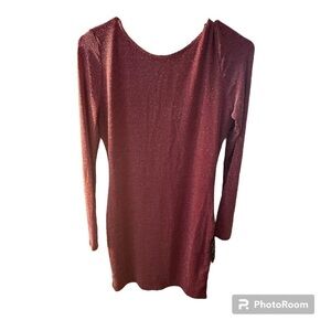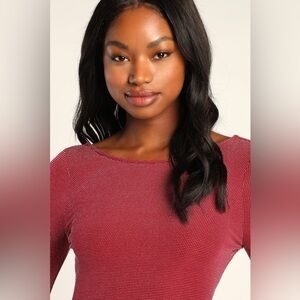Lulus Exclusive! Stay party-ready in the Gift of Love Red and Silver Backless Long Sleeve Bodycon Dress! Stretchy red knit, with metallic silver threading, creates a wide, rounded, neckline, and slightly sheer long sleeves. Fitted bodice leads into a plunging open back, and sexy bodycon skirt.