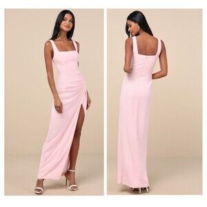 Lulus Glamorous Disposition Light Pink Ruched Maxi Dress Size Large NWT Cocktail