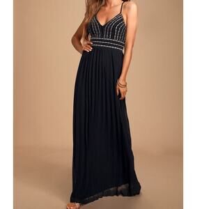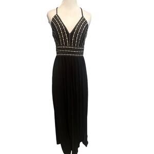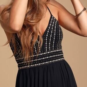 Lulus Glamorous Gala Black Embroidered Maxi Dress Womens Small Beaded Open Back